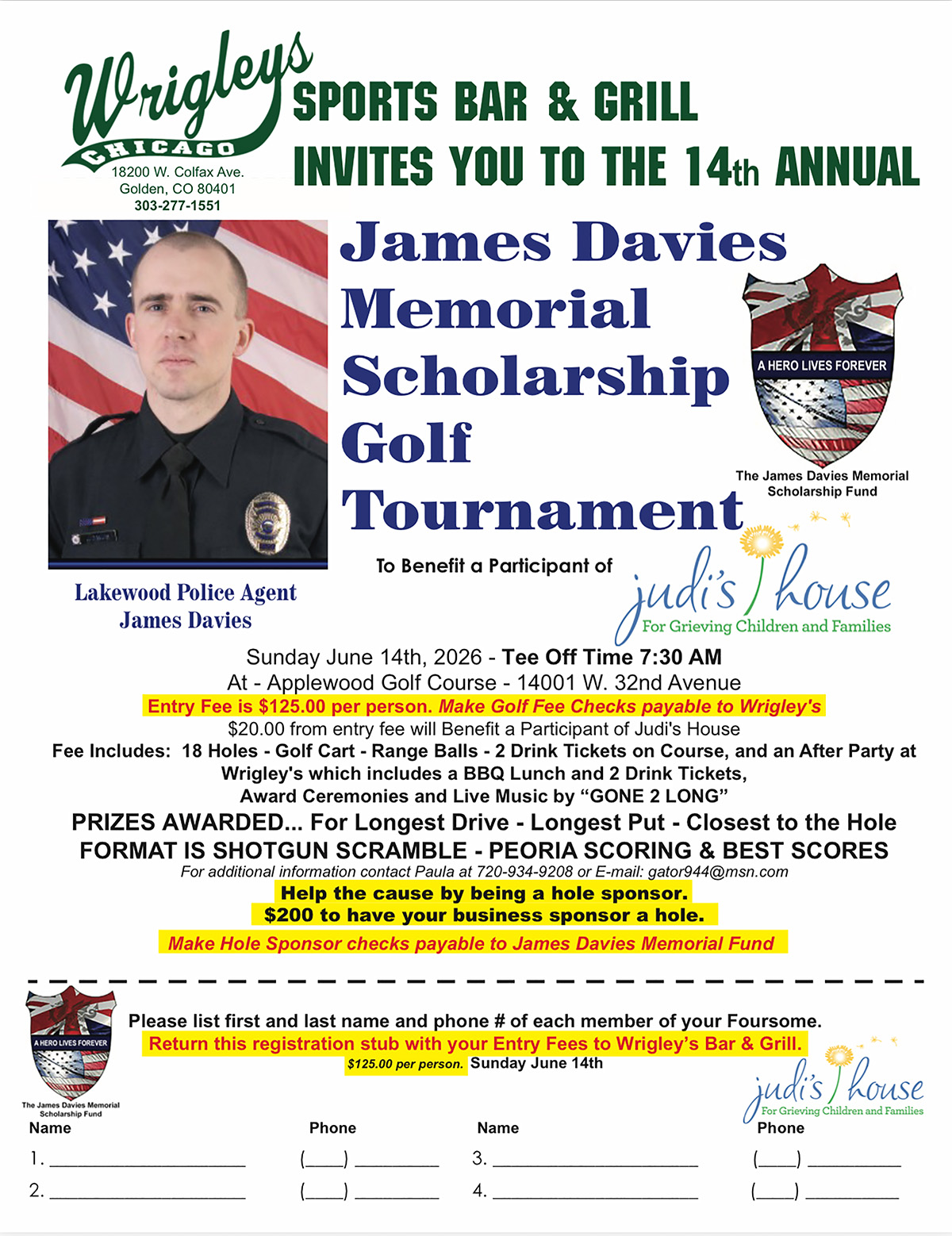 SAVE THE DATE for the 2026 James Davies Memorial Scholarship Golf Tournament! Sunday, June 14th, 2026